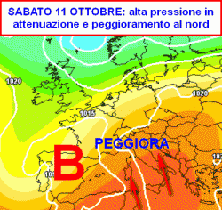 Sabato 11 ottobre: peggiora al nord, Toscana e Sardegna con piogge, per il resto tempo buono.