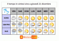 SINTESI PREVISIONALE sino a GIOVEDI 21 dicembre: