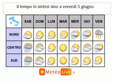 SINTESI PREVISIONALE sino a al 5 giugno: