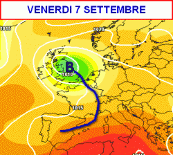 La sopra citata saccatura con annesso sistema frontale si muoverà verso levante e nella giornata di venerdì 7 settembre sarà in piena azione sull’Italia, con effetti soprattutto sulle regioni centro-settentrionali.