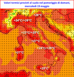 L’apice del nostro anticiclone viene raggiunto proprio in questi giorni; l’Europa centrale viene infatti interessata da una vistosa onda d’aria calda di origine subtropicale che porta con sè la prima parentesi dal sapore estivo di questa stagione 2017. Anche domani, mercoledì 17 maggio, ritroveremo sul nostro Paese condizioni atmosferiche STABILI con valori termici abbastanza elevati soprattutto nelle zone interne, con punte sino a +28°C. Un po’ di instabilità residua insisterebbe soltanto sui rilievi dell’estremo sud.