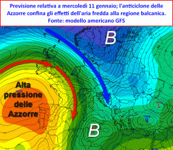 Come detto questa parentesi d’inverno avrà però vita breve; con l’arrivo della prossima settimana (lunedì 9 – martedì 10) ecco farsi sotto nuovamente la mitezza riportata da una circolazione di venti oceanici che sull’Europa meridionale e sul Mediterraneo troverà massima espressione nella presenza ostinata di una figura anticiclonica che, lentamente, confinerà il freddo alla regione balcanica, riportando le temperature italiane nella media del periodo.