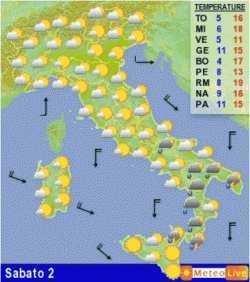 Sabato 2 marzo: piogge sparse al meridione al mattino, in attenuazione nel pomeriggio. Su tutte le altre regioni bel tempo; clima mite e un po’ ventoso al sud.