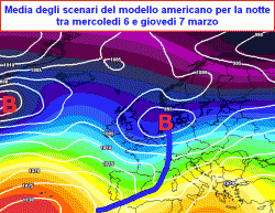 La media degli scenari del modello americano (terza mappa) ce la mostra in azione sul nord Italia proprio nella notte tra mercoledi e giovedì. Al momento l’entità dei fenomeni è ancora in fase di studio ed è in stretto rapporto su quanto riuscirà a penetrare il corpo nuvoloso nel bacino centro-occidentale del Mediterraneo.