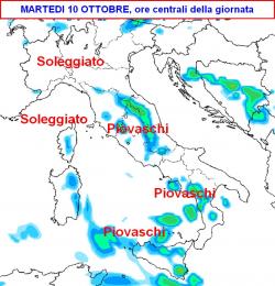 Lunedi 9 e martedì 10 ottobre: rovesci locali nelle zone interne del centro, basso Tirreno e Sicilia, per il resto bel tempo. Clima mite ovunque.