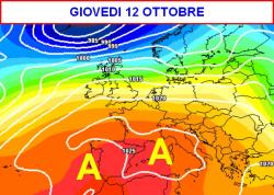 A seguire cosa potrebbe succedere? Sembra molto probabile una nuova forte rimonta dell’alta pressione sul Bacino centro-occidentale del Mediterraneo a partire da mercoledì 11 ottobre, con una sua prosecuzione almeno fino alla metà del mese.