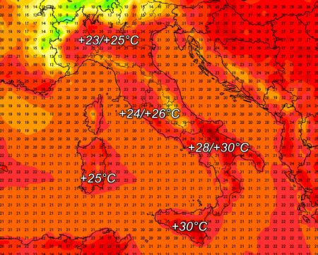 Soltanto con l’inizio della prossima settimana e soprattutto nell’evoluzione mostrata dal modello europeo appare un rialzo più convincente della temperatura dovuto ad un maggior contributo d’aria calda subtropicale (soprattutto per il sud) ma la previsione rimane ancora da valutare.