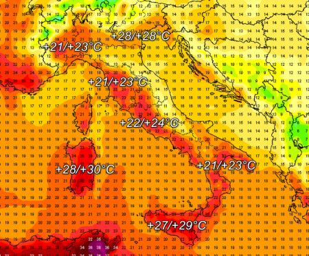 L’aumento della temperatura si farà sentire su tutto il Paese ma sulle altre regioni risulterà meno accentuato. Tra martedì e mercoledì saranno comunque possibili picchi fino a +25/+27°C nelle zone interne del centro e sulla Valpadana. Lungo le coste nei valori massimi l’aumento della temperatura risulterà più contenuto, questo grazie all’influenza portata dalle prime brezze di stagione. A partire dalla prossima fine settimana l’anticiclone tenderà ad attenuarsi, lasciando spazio ad una situazione progressivamente più instabile che potrebbe palesarsi al centro ed al nord.