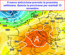 Martedì 13 tempo stabile praticamente ovunque. Attenzione alle prime nebbie in arrivo sulla Valpadana. Molto mite in quota e lungo le coste, freddo umido in pianura Padana.