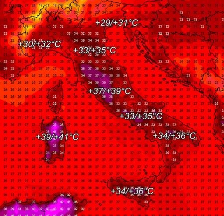 Venerdì 21 soleggiato con temperature massime possibili fino a +38/+40°C nell’entroterra del centro e del sud.