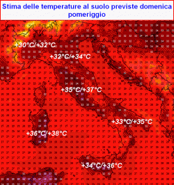 Sul profilo del caldo, dobbiamo segnalare i valori particolarmente elevati che sono previsti nelle zone interne del centro e del sud, con picchi sino a +36°C/+38°C. Lungo le coste i valori saranno inferiori ma verranno compensati da tassi elevati di umidità relativa che renderanno il caldo afoso.