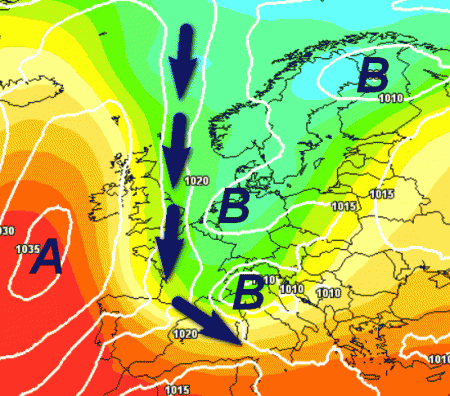 Notate l’allungo dell’alta pressione delle Azzorre verso nord e l’aria fredda che penetrerà sul Mediterraneo dalla Valle del Rodano. Con questa situazione il tempo non potrà che peggiorare su tutta l’Italia, ad iniziare appunto dalle regioni settentrionali, accompagnando anche un discreto calo delle temperature.