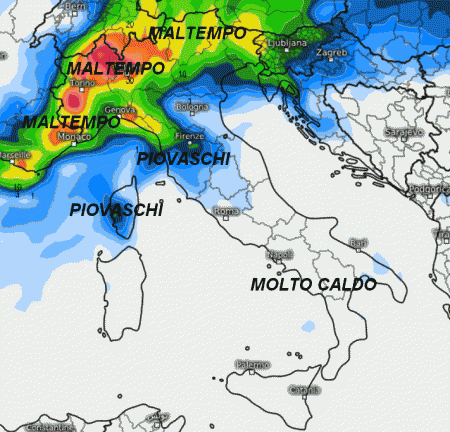 Meteo a 7 giorni: rubinetti piovosi APERTI al nord, MOLTO CALDO al sud fino al week-end, poi…