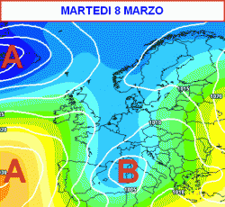 RIASSUMENDO: giovedì 3 marzo tempo instabile lungo il versante adriatico e al meridione, con rovesci e nevicate in Appennino. Per il resto bel tempo. Clima ventoso e abbastanza freddo ovunque con mari in cattive condizioni. Venerdì 4 marzo "tregua armata" sull’Italia, con residue piogge al meridione al mattino e nuovi fenomeni al nord a fine giornata. Sabato 5 marzo tempo perturbato al centro-nord con piogge anche intense e nevicate sulle Alpi, fenomeni meno frequenti al sud a parte rovesci in arrivo sulla Campania a fine giornata, ventoso e mari in cattive condizioni. Da domenica 6 fino a martedì 8 marzo tempo instabile su tutta la Penisola con rovesci e nevicate a nord a quote anche piuttosto basse. Mercoledì 9 e giovedì 10 migliora da ovest con ampie schiarite e temperature massime in aumento.
