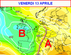 La situazione inizierà a cambiare nella giornata di venerdì 13 aprile (seconda mappa).