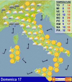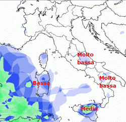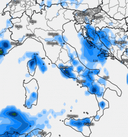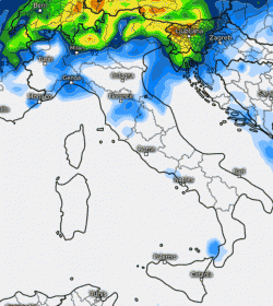 Rovesci di un certo spessore potrebbero presentarsi sulla fascia alpina e prealpina centro-orientale, con neve a quote di media monrtagna; qualche innaffiata si prevede anche sulla Liguria, le zone di pianura più a nord e l’alta Toscana; per il resto le piogge saranno scarse se non del tutto assenti.