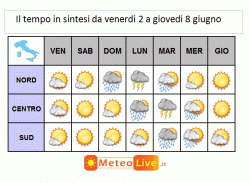 La giornata più stabile e calda del periodo risulterà invece quella di sabato 3 giugno.