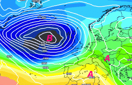 Passato questo sistema, arriverà sull’Italia un po’ di alta pressione dopo gli ultimi rovesci al sud che probabilmente bagneranno la domenica. Ecco comunque la mappa sinottica attesa per lunedi 14 dicembre: