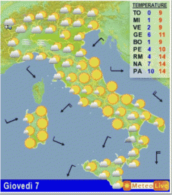Situazione meteorologica abbastanza tranquilla fino alla giornata di sabato. Da domenica una nuova perturbazione interesserà l'Italia ad iniziare dalle regioni settentrionali.