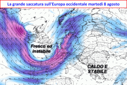 Il termine ufficiale del grande caldo sul bacino centrale del Mediterraneo avverrà quindi in due mosse; il passaggio del primo impulso d’instabilità, una sorta di "perturbazione apripista" tra domenica sera e lunedì mattina, poi la seconda più intensa perturbazione troverà dinanzi a sè una figura anticiclonica indebolita, potendo in tal modo attraversare il nostro Paese nel corso della prossima settimana, con effetti più decisi anche sul piano termico.
