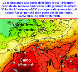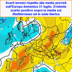 Già entro il pomeriggio-sera di domenica 31 luglio, ecco affacciarsi qualche manifestazione temporalesca lungo l’arco alpino e prealpino occidentale, "sintomo" quest’ultimo della penetrazione verso i nostri versanti delle masse d’aria più fresche oceaniche. Tra lunedì primo agosto e martedì 2, il transito della coda di una perturbazione, apporterà rovesci e temporali su Alpi, Prealpi e forse sulle località pianeggianti del nord-est, sancendo il ritiro della calura africana dal nostro Paese. In questa sede potremo attenderci un ritocco verso il basso delle temperature ed un rinforzo della ventilazione più fresca di Maestrale, Libeccio e forse della Bora sull’alto Adriatico. (da confermare)