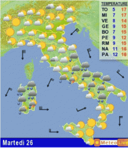 Il tempo tornerà quindi ad essere stabile da nord a sud, con attenuazione del vento e temperature miti; non dovrebbero comunque registrarsi valori eccessivamente elevati sulla nostra Penisola.