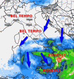 Come abbiamo detto in altra sede, non arriveranno le tanto attese piogge al nord (a parte episodi locali) mentre verranno nuovamente prese di mira le regioni adriatiche, le aree appenniniche, il meridione e in parte anche le Isole.