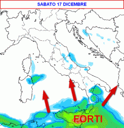 Domenica 18 dicembre estensione dei fenomeni anche intensi alla Sardegna e a tutto il meridione, invariato altrove.