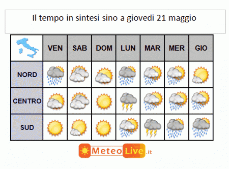 SINTESI PREVISIONALE SINO A GIOVEDI 21 MAGGIO:
