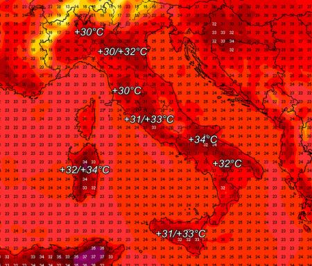 L’aumento della temperatura si farà sentire soprattutto nelle zone interne e pianeggianti del centro e del nord; ci riferiamo quindi alla Valpadana, la piana di Firenze, l’entroterra di Umbria, Campania e Lazio, su questi settori, complici anche l’elevato irraggiamento solare di giugno, le temperature massime potranno varcare facilmente la soglia dei 30 gradi già in tarda mattinata.