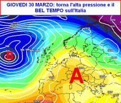 Tra mercoledì 29 e venerdì 31 marzo il sole dovrebbe splendere da nord a sud (seconda mappa) sotto l’egida di un vasto e robusto anticiclone.