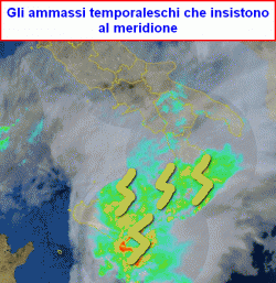 La prevista ondata di maltempo è ormai realtà sulle estreme regioni meridionali (prima figura a lato). Le situazioni critiche sono diverse, segnatamente nel Messinese, nel Catanese, nel Siracusano e nel Reggino. Nelle prossime ore verrà coinvolto probabilmente anche il Salento, mentre inizierà (in parte) a liberarsi la Sicilia occidentale.