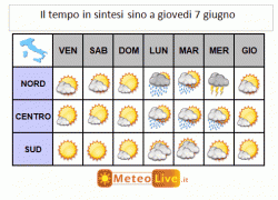 SINTESI PREVISIONALE SINO A GIOVEDI 7 GIUGNO: