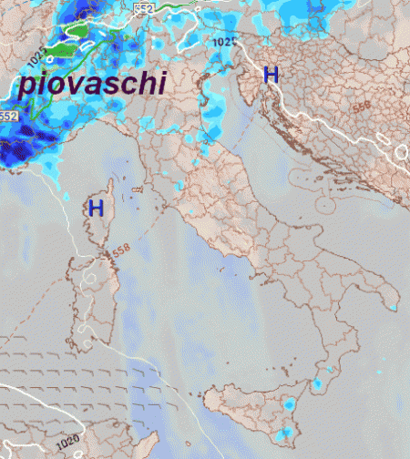Anticiclone un po' deboluccio ma sufficiente ad assicurare una relativa stabilità sino a martedì, anche se non mancheranno annuvolamenti irregolari; in Liguria e Toscana attesi anche dei piovaschi. Mercoledì piogge al nord-ovest. Clima nel complesso mite.