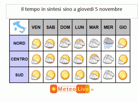 SCHEMA GRAFICO del tempo previsto sino a giovedì 5 novembre