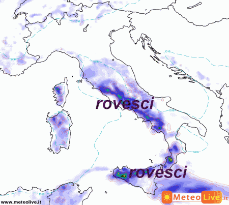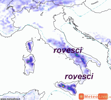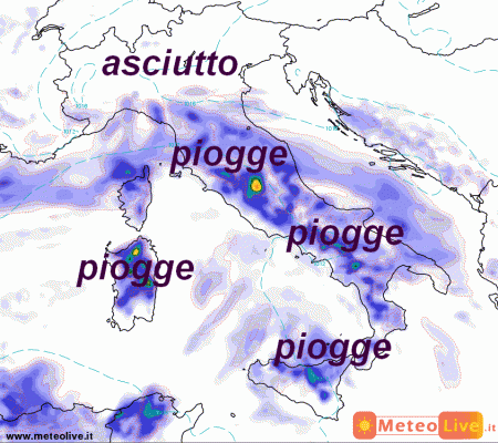 Una depressione sta regalando qualche preziosa pioggia alla Penisola dopo settimane di seccume quasi assoluto; tuttavia le precipitazioni già dalle prossime ore tenderanno a localizzarsi segnatamente sulle regioni centrali e meridionali. Questa la distribuzioni dei fenomeni prevista dal nostro modello per la giornata di mercoledì 22 aprile: