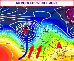 Il sud resterà ancora in attesa e verrà interessato solo successivamente. Se volete ulteriori delucidazioni sul lungo termine leggete la rubrica "Fantameteo". Per il momento ecco la tendenza del tempo fino a mercoledi 27 dicembre.