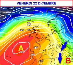 Ancora correnti settentrionali progressivamente meno fredde fino a sabato 23; tra domenica 24 e lunedi 25 dicembre alta pressione e mitezza a seguire probabile peggioramento ad iniziare dal nord.