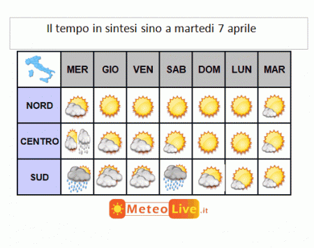 SINTESI PREVISIONALE sino a MARTEDI 7 APRILE: