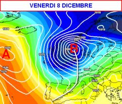 Questa situazione si manterrà inalterata anche nella giornata di giovedì 7 dicembre, mentre venerdì 8 (l’Immacolata) una nuova figura depressionaria allungherà la sue spire verso l’Italia, muovendo le fila di un’intensa perturbazione.