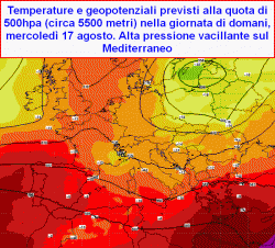 L’arrivo dell’instabilità al centro ed al nord tra mercoledì 17 e venerdì 19 agosto, appare oramai una tappa obbligata dell’atmosfera; tuttavia ci manterremo sempre ben distanti da una decisa battuta d’arresto stagionale che al momento appare ancora lontana. L’atmosfera procede infatti per "tentativi", tentativi di rottura che si traducono in effimere riduzioni della temperatura al prezzo di qualche temporale sparso che, come sovente accade, potrà verificarsi con maggior facilità sulle regioni dell’Italia settentrionale.