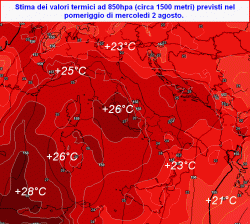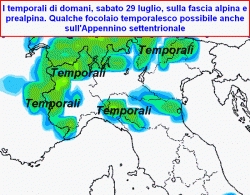 Entro i prossimi due giorni, qualche temporale riuscirà a manifestarsi sulle regioni dell'Italia settentrionale (arco alpino e prealpino), mentre sul resto del Paese la temperatura segnerà una risalita lenta ed inesorabile. Il picco di calore tra lunedì 31 luglio e sabato 5 agosto, con valori assai elevati.