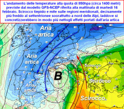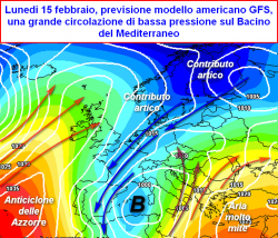 Questo elemento sarà di fondamentale importanza nella comprensione della dinamica perturbata che, nonostante la presenza di un perno depressionario collocato a latitudine piuttosto bassa, riuscirà a coinvolgere praticamente tutto il nostro Paese, anche le regioni settentrionali che in altre occasioni sarebbero risultate sottovento. Il momento di enfasi del maltempo è atteso soprattutto nella giornata di martedì 16, quando il perno della depressione risalirà ulteriormente verso nord, collocandosi approssimativamente sulla Corsica. Le precipitazioni si concederanno generose su Sardegna, regioni del versante tirrenico e regioni settentrionali. Un miglioramento soltanto a partire da mercoledì 17 ed ancor più da giovedì 18 febbraio.