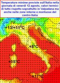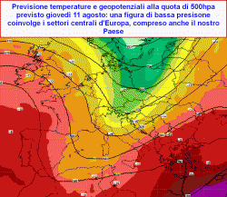 ben sviluppata, diretta espressamente ai settori centrali del Mediterraneo. Gli episodi più organizzati di instabilità previsti tra mercoledì 10 e giovedì 11 agosto, in seguito un calo delle temperature su tutto il Paese, particolarmente sensibile al nord e sui versanti del medio ed alto Adriatico.