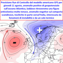 L’evoluzione successiva (Ferragosto) porterà invece il rinforzo di un vasto anticiclone sul Mediterraneo e sull’Europa. Alle alte latitudini dell’oceano Atlantico, verrebbe ripristinata una circolazione nuovamente di stampo occidentale, conseguenza di una attenuazione quantomeno temporanea degli scambi di calore lungo il senso dei meridiani a favore forse di una circolazione nuovamente di tipo "zonale".