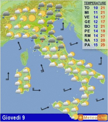 Se volete delucidazioni sul tempo a lungo termine leggete la rubrica Fantameteo; per il momento ecco la linea di tendenza del tempo fino a mercoledi 15 maggio.