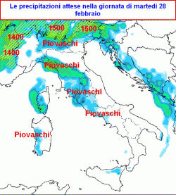 Le piogge riguarderanno limitati settori del centro-nord e saranno alternate a lunghe pause asciutte. Sulle Alpi andrà in scena qualche nevicata sopra i 1400-1500 metri mentre al meridione e sulle Isole i fenomeni si prevedono scarsi in un contesto climatico molto mite.