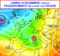 Lunedì 10 e martedì 11 novembre: brutto tempo al centro-nord con piogge sparse e rovesci, in graduale estensione al resto della Penisola. Ventoso, ma mite.