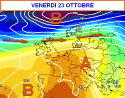 La cartina sinottica attesa per venerdì 23 ottobre ci mostra il tentativo di distensione dell’anticiclone azzorriano verso levante.
