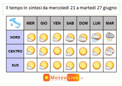 SINTESI PREVISIONALE sino a martedì 27 giugno: